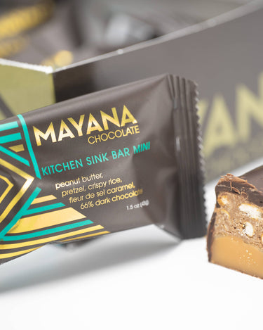 It's all here, everything you need to indulge your sweet tooth...peanut butter, pretzel and crisp rice combine with milk chocolate, fleur de sel caramel and our signature 66% dark chocolate for a taste experience unlike any other. 1.5 oz bar 10 bars/case Shelf life: 15 months