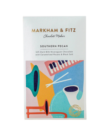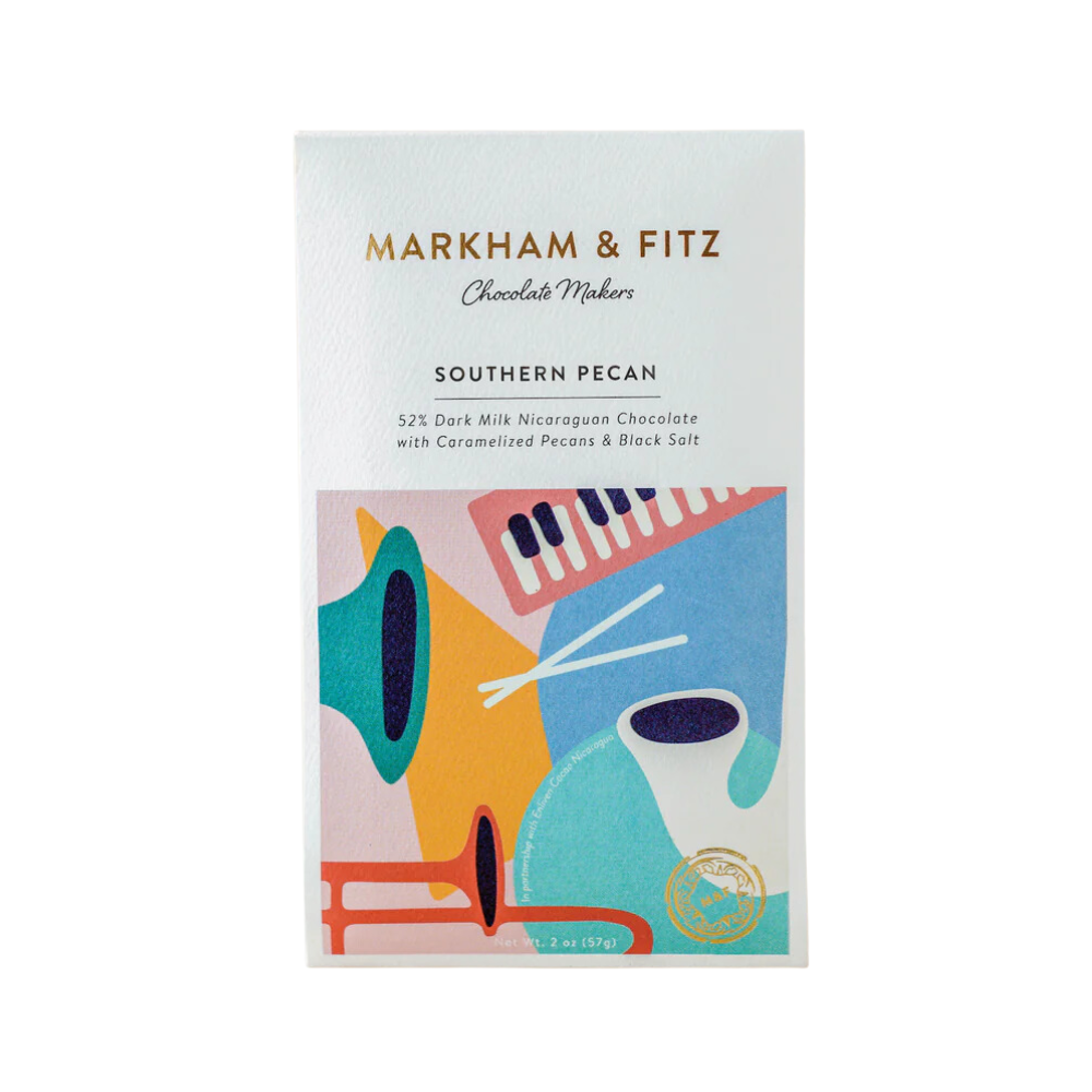 52% dark milk chocolate with caramelized pecans and black salt. Nicaragua cacao melds with cream and the subtle crunch of Louisiana lady’s heritage, the pecan. Black salt harmonizes a classy finish. These beans of this chocolate hail from Matagalpa, Nicaragua by cooperative, La Colonia.