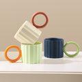 Handmade Ceramic Coffee Mug: Green with Orange Handle