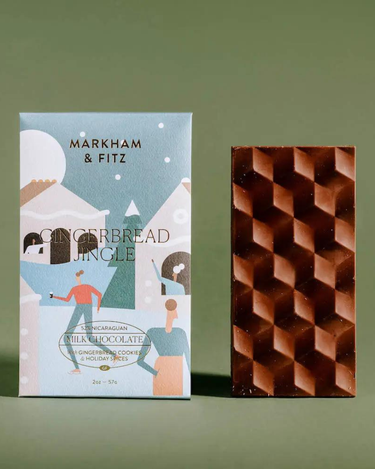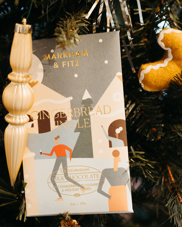 Our Gingerbread Jingle Dark Milk Chocolate Bar is a festive blend of 52% dark milk chocolate, crunchy gingerbread cookies, and holiday spices. It’s like dipping gingersnap cookies into smooth milk chocolate, and it’s bound to make your holiday season extra sweet. Get ready to jingle all the way with this holiday delight!